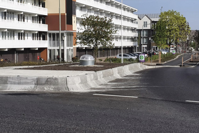 Le rond-point existant au carrefour ne pouvait plus faire face à la circulation. Au lieu de cela, un rond-point turbo a été réalisé, avec un tunnel pour les piétons et les cyclistes.
