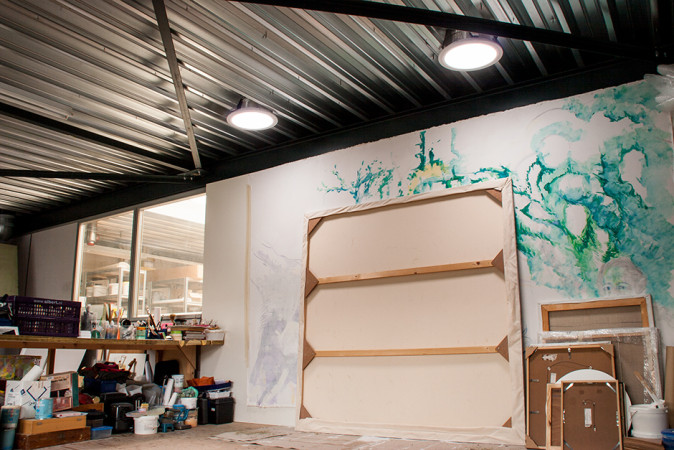 Le système Solatube de lumière du jour, permets de façon relativement simple de créer un supplément de lumière naturelle. C’est pourquoi le propriétaire a choisi de placer deux Solatubes au-dessus de la toile de peinture. La toile est de cette manière uniformément illuminée avec de la lumière naturelle, avec le spectre de couleur complet. Les Solatubes sont bien isolé et rendent donc aucune chaleur, ce qui est idéal pour la peinture.