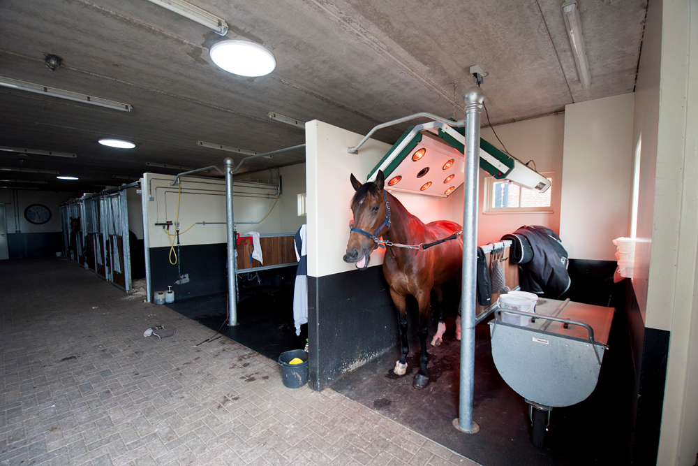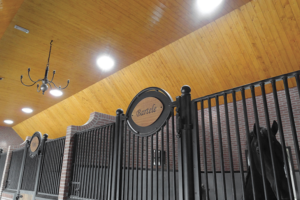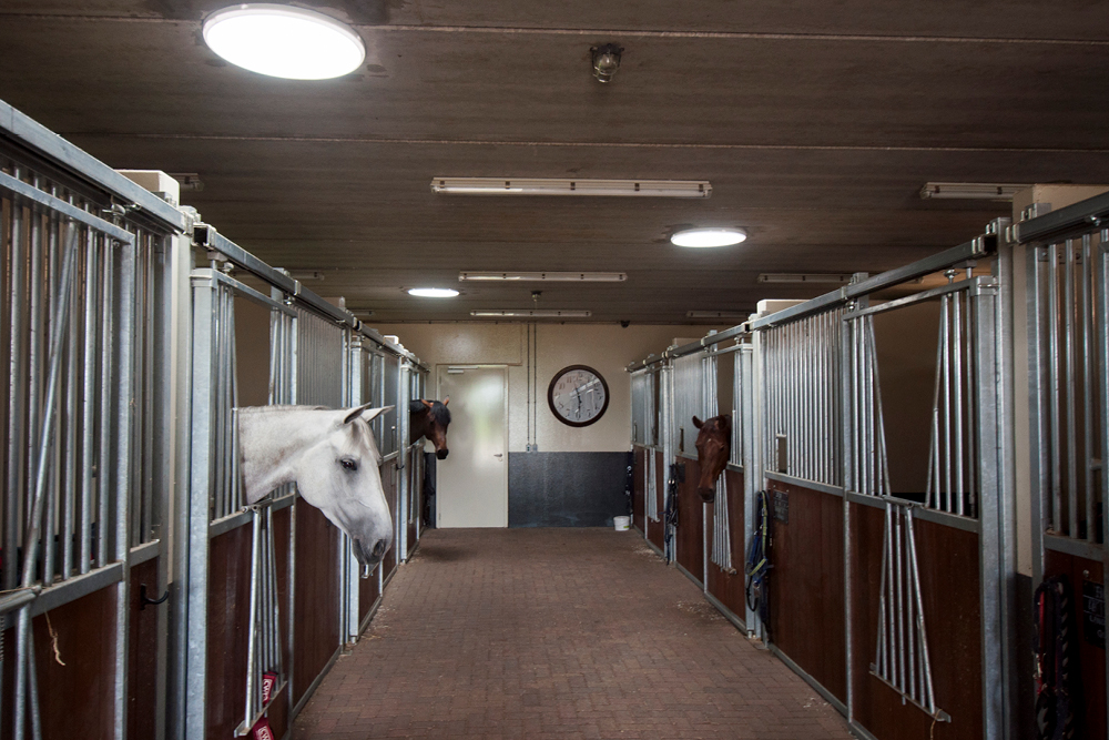Eén van de eisen van de EU-certificering is dat contact met de buitenwereld moet worden vermeden om ziektes te voorkomen. Door het plaatsen van grote ramen om de binnenplaats hebben bezoekers nu toch de gelegenheid om de hengsten te bekijken. Om ook voldoende daglicht in de stallen te hebben was er in eerste instantie een lichtstraat voorzien. In combinatie met de glaswand zou dit echter voor schittering zorgen; zowel onprettig voor de paarden als de bezoekers.
