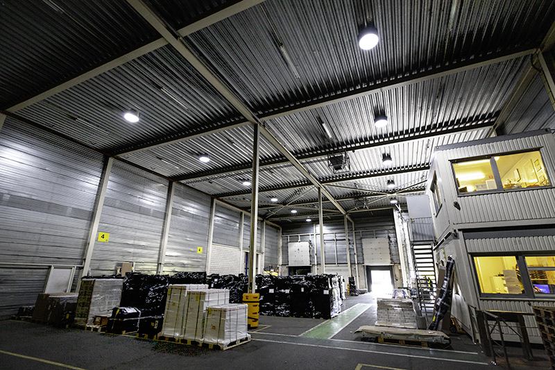 Tussen de lichtstraten in en boven het laad- en losdepot werden 14 Solatubes Ø 53 cm (magazijnvariant voor open plafond) toegepast, aanvullend op de lichtstraten. Vanwege de hoogte van het plafond is gekozen voor de Prismatic plafondplaat. Deze afwerking van het daglichtbuis brengt het daglicht naar de werkvloer toe.