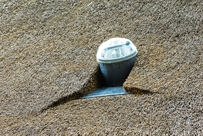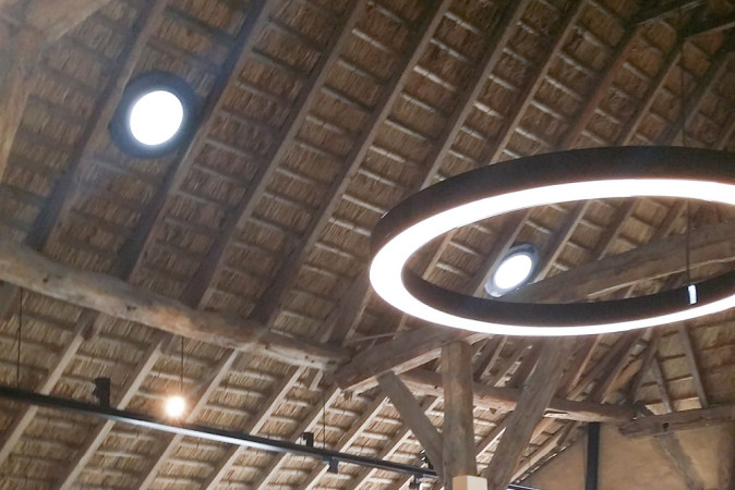 Het strodak wordt vervangen door een rieten dak. De Solatube bleek de ideale oplossing met een gering aan dakopeningen. Door middel van de Solatubes wordt er maximale lichtopbrengst naar binnen gehaald zonder de oorspronkelijke bouw aan te tasten. Er zijn drie Solatubes type Ø 35 cm geplaatst met een verhoogde loden dakdoorvoer, speciaal van rieten daken. Dankzij de daglichtbuizen is de daglichttoetreding aanzienlijk verbeterd!