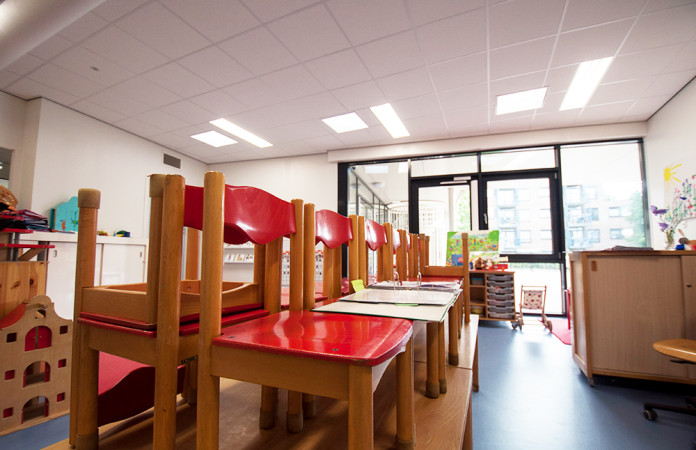Voor het toetreden van natuurlijk daglicht is gekozen om Solatube ‘s met elektrische daglichtdimmers in te bouwen. Met de mogelijkheid tot verduistering is de speelruimte binnen enkele minuten omgetoverd tot slaapruimte. Daarbij is de Solatube goed geïsoleerd, waardoor de kou en warmte van buiten daar ook blijft en de temperatuur binnen niet beïnvloed wordt. Dit geeft een aanzienlijke energiebesparing. Het gebouw is een zeer licht en ruimtelijk pand geworden, dat een optimaal comfort garandeert voor zowel de werknemers als voor de peuters.