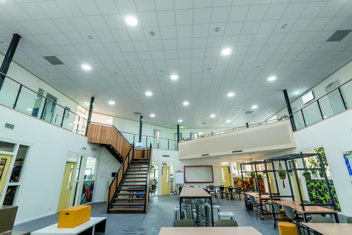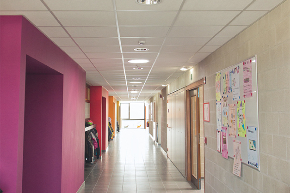 Het bestuur wilde de circulatie vanuit haar visie op een duurzame manier belichtten. De architect heeft er voor gekozen om een daglichtgestuurde kunstverlichting te combineren met het Solatube daglichtsysteem. Daglicht laten binnen vallen door het dikke pakket van het dak met verlaagde plafond (technisch plafond) van de circulatie is niet evident; de Solatubes zijn hierbij de ideale oplossing. Het daglicht zorgt bovendien voor mindere energielasten en voor een gezond binnenklimaat voor de jonge leerlingen. Veel daglicht bevordert namelijk het concentratievermogen.