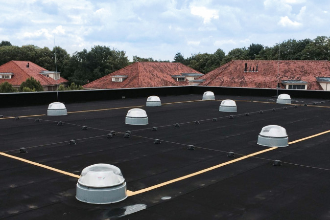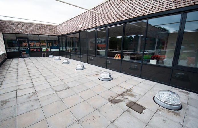 Er is vijf keer de Solatube Ø 53 cm Polycarbonaat en drie keer de Solatube Ø 53 cm met dubbele koepel geïnstalleerd. In de gymzaal is gekozen voor drie keer Ø 53 cm met dubbele koepel en met dimmer. Hiervoor is gekozen, omdat de gymzaal ook dient als podium. De Solatube ’s in het kinderdagverblijf komen uit op het dakterras. Hierdoor is gekozen voor Polycarbonaat koepels. Deze zijn slag vaster dan de standaard acrylaat koepels..